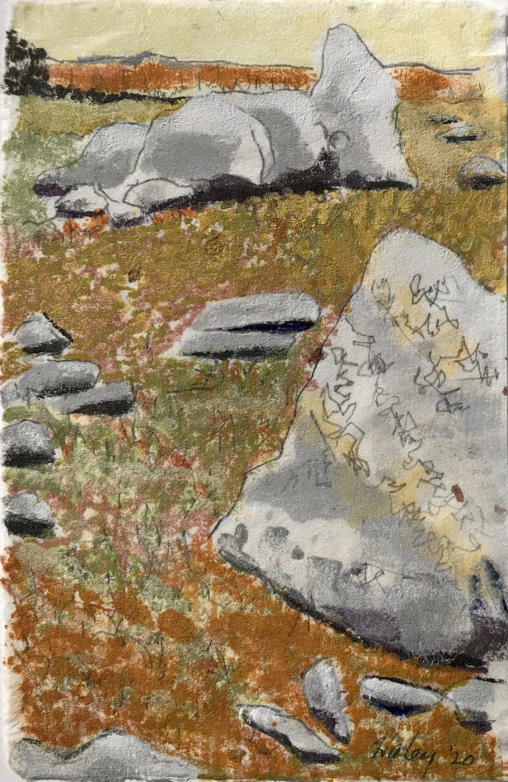 “Barren toward Blue Hill” 2020 monoprint drawing on Kitakata paper 11x6”