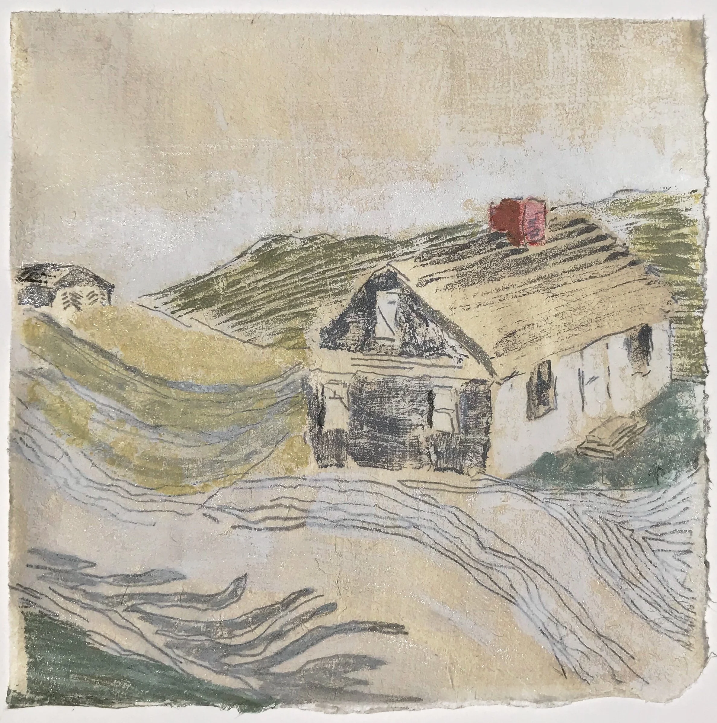 “Listen for the Quiet” 2018 monoprint drawing on Kitakata paper 6x6”