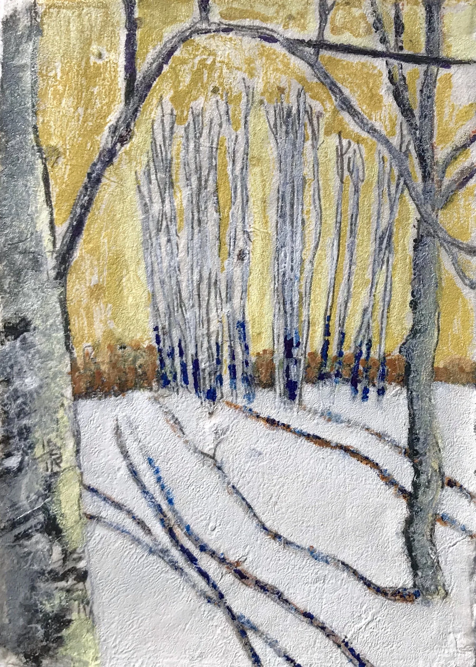 “Snow Shadow” 2020 monoprint drawing on hand-made rice paper 7x5”